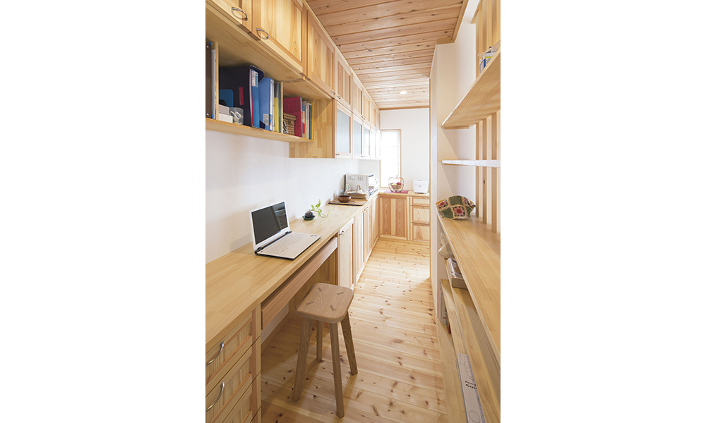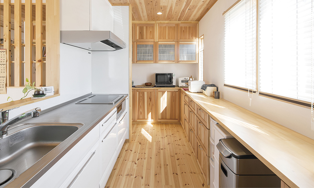 お子様が触れる床やイスには、ぬくもりのあるヒノキやスギを使用。「ずっと使い続けられる家にしたい」というご希望をかなえるために、お客様とともに考え抜きました。